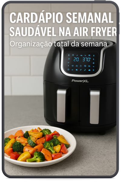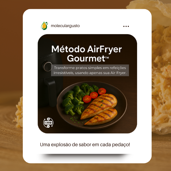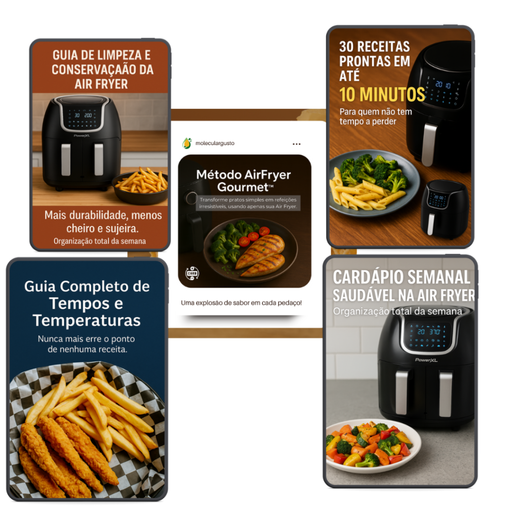 É um método estruturado, passo a passo, que ensina como pensar, preparar e finalizar pratos perfeitos na Air Fryer, independentemente do modelo que você tenha.