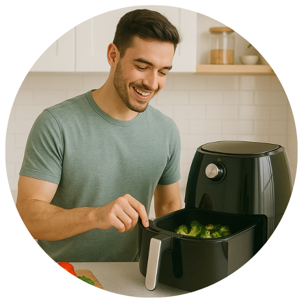 “Eu só usava a Air Fryer para batatas. Depois do método, preparei meu primeiro jantar completo e ficou sensacional.”